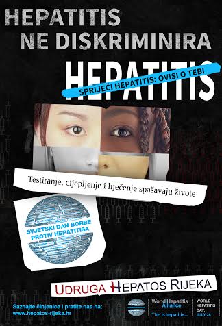 Bliži nam se Svjetski dan hepatitisa 28.07. koji se obilježava u cijelome svijetu. Udruga „HEPATOS RIJEKA„ kreće s prvom aktivnošću obilježavanja toga datuma, a to je medijska kampanja „HEPATITIS NE DISKRIMINIRA„ koja kreće u Novom listu i na Kanalu RI. Zahvaljujemo našim medijskim pokroviteljima u ovoj aktivnosti koji su prepoznali važnost teme i edukacije. Nadamo se da će poruka doprijeti do što većeg broja građana.