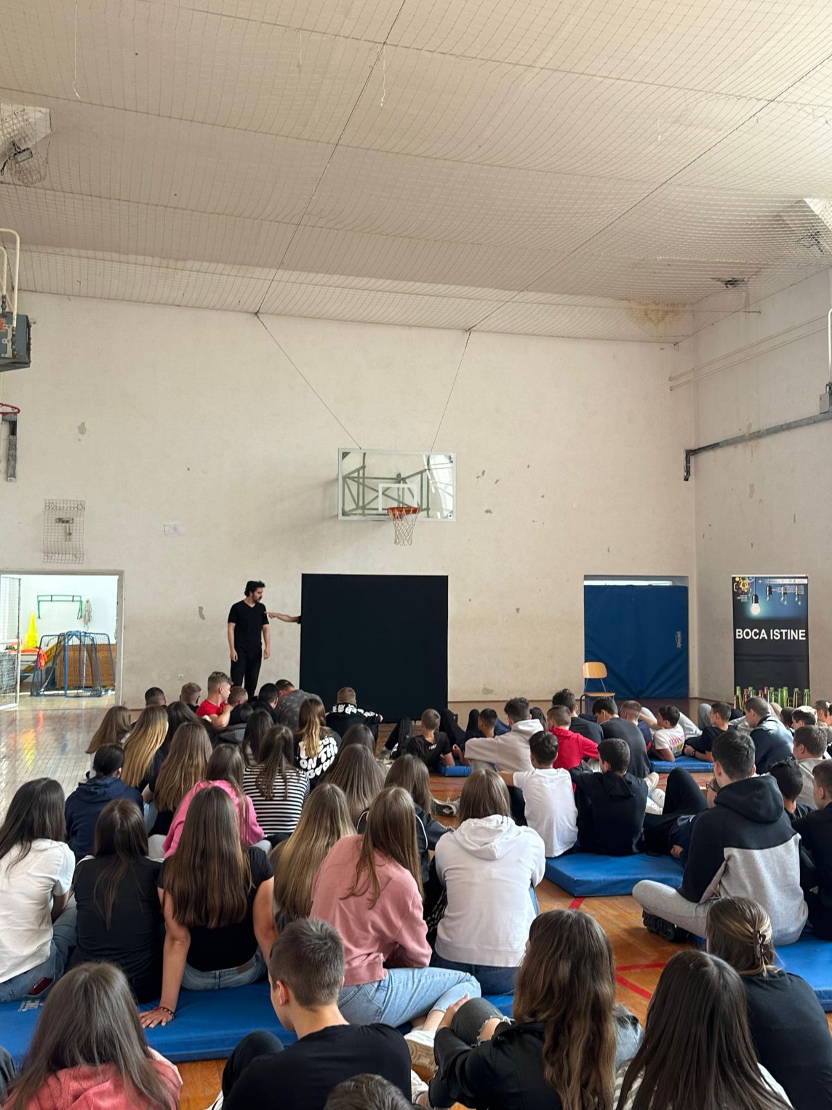Ukupno 64 učenika/ca prvih razreda, uz pedagoginju Maju Rukavinu te nastavnike, pogledalo je našu edukativnu predstavu "BOCA ISTINE" usmjerenu prevenciji zlouporabe alkohola među mladima, realiziranu u suradnji s Kazalištem EDUKAZ.