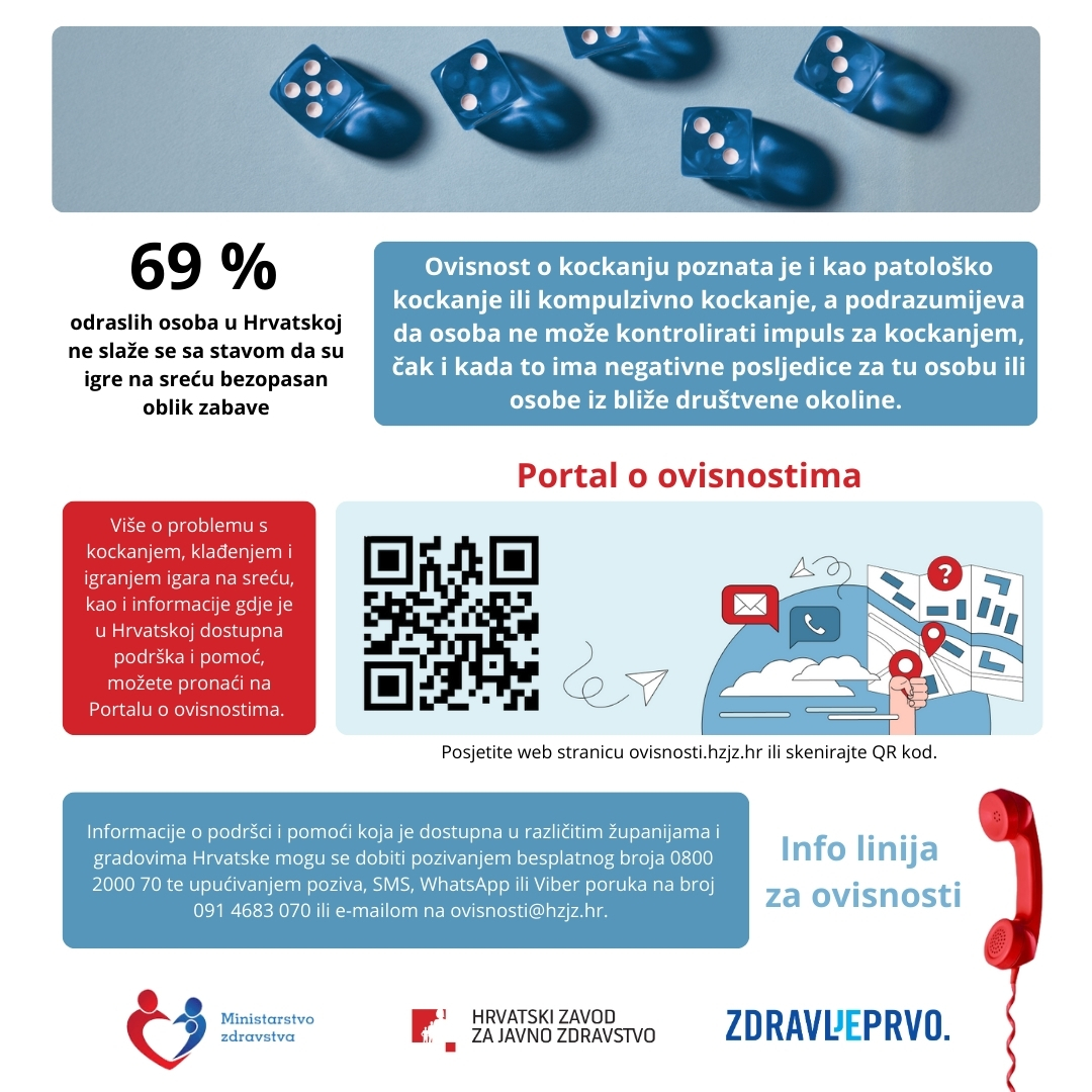 U okviru kampanje "Ne ovisi - informiraj se" Ministarstvo zdravstva i HZJZ skreću pozornost na još jedan oblik ovisnosti – ovisnost o kockanju.