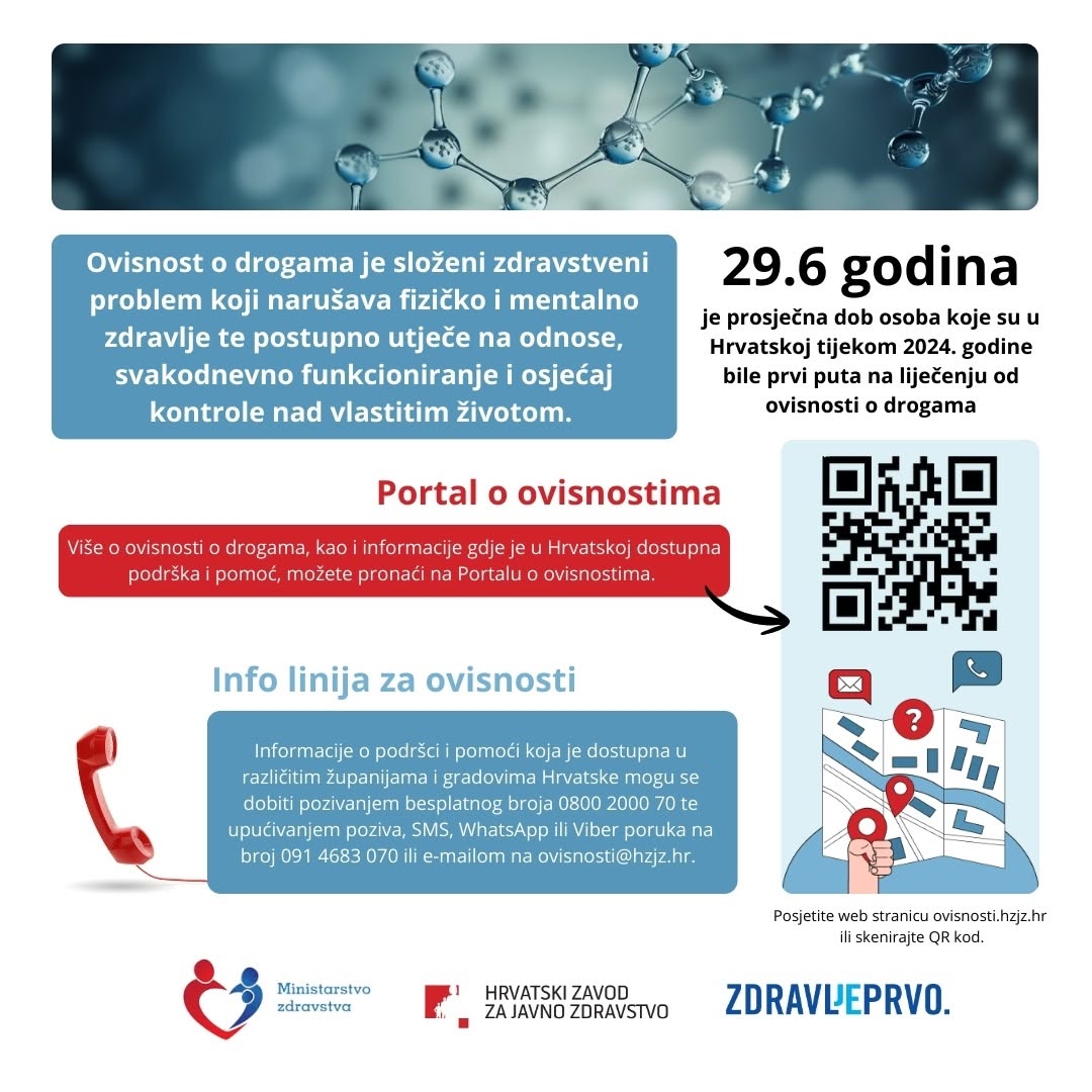Ministarstvo zdravstva i @hzjz_hrvatska nastavljaju osvješćivati javnost o štetnim učincima različitih ovisnosti. Ovoga puta u fokusu je ovisnost o drogama.