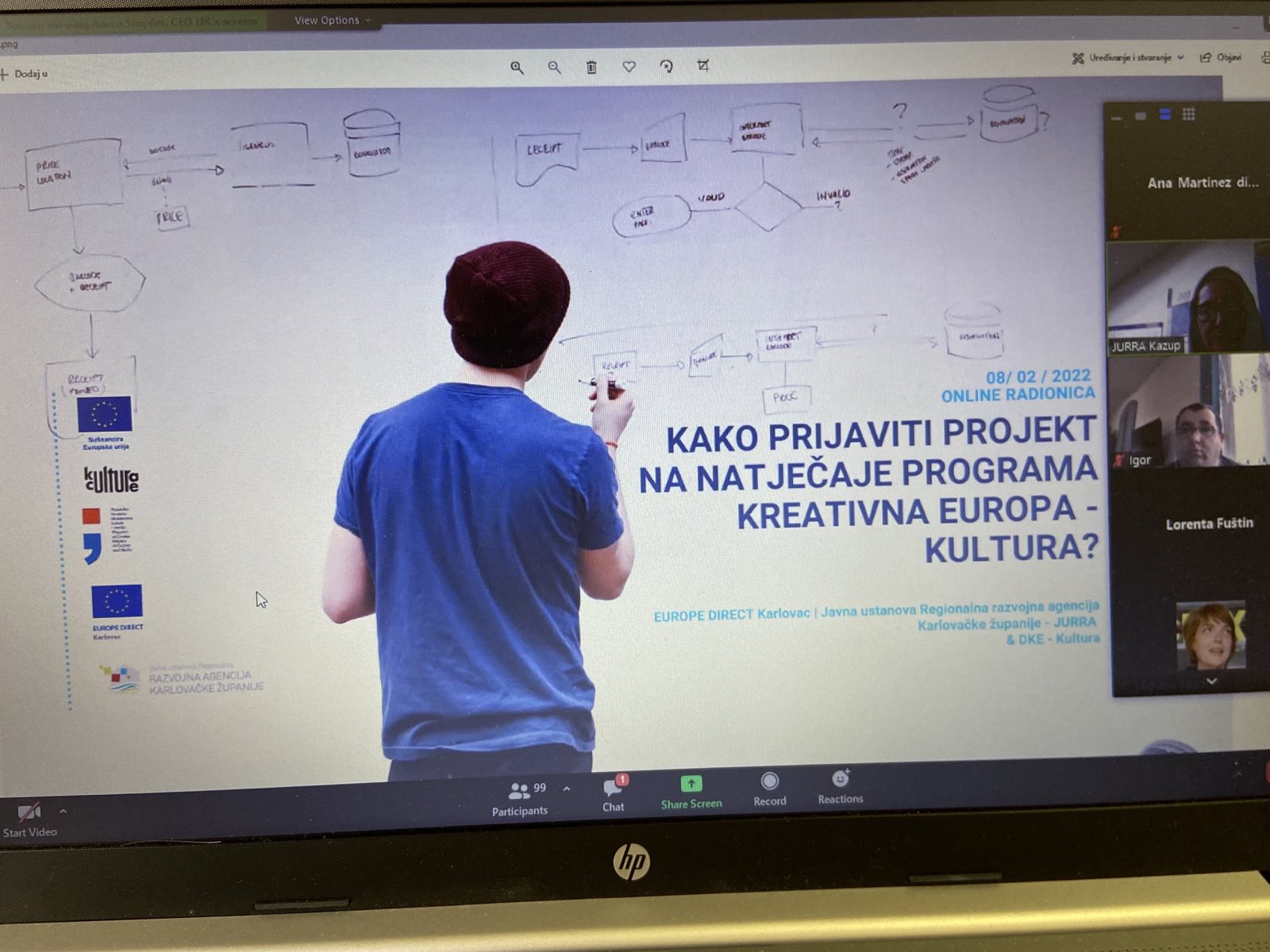 Danas, 08.02.2022.g., Udruga Hepatos Rijeka sudjelovala je na Zoom radionici "Kako prijaviti projekt na natječaje programa Kreativna Europa – Kultura?" u organizaciji Deska Kreativne Europe - Kultura pri Ministarstvu kulture i medija i EUROPE DIRECT Karlovac.