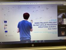 Voditeljice radionice Anera Stopfer i Morana Bigač Leš, u 2 sata prezentacije, pružile su kratak uvod u program EU Kreativna Europa – potprogram Kultura s naglaskom na natječaj za Europske projekte suradnje čije otvaranje se očekuje 1. veljače 2022. godine.